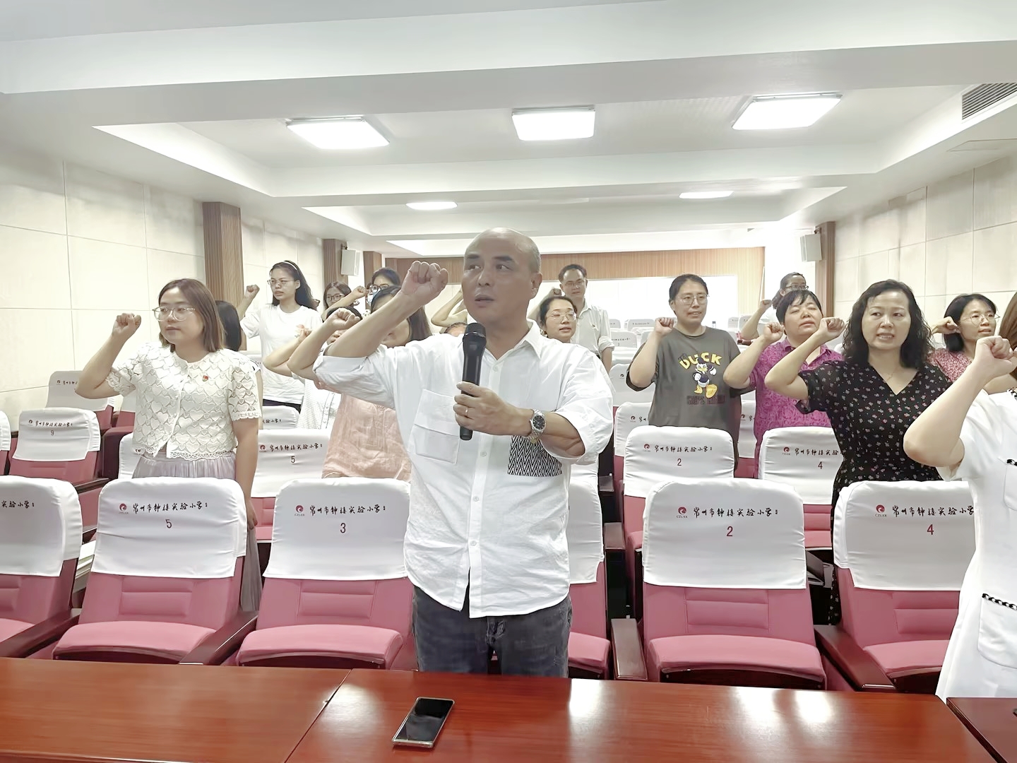 支部书记、校长张永明带领全体党员面对党旗,重温入党誓词。句句铿锵的誓言,激励着全体党员不忘初心、砥砺前行,用实际行动践行共产党员的责任与担当。