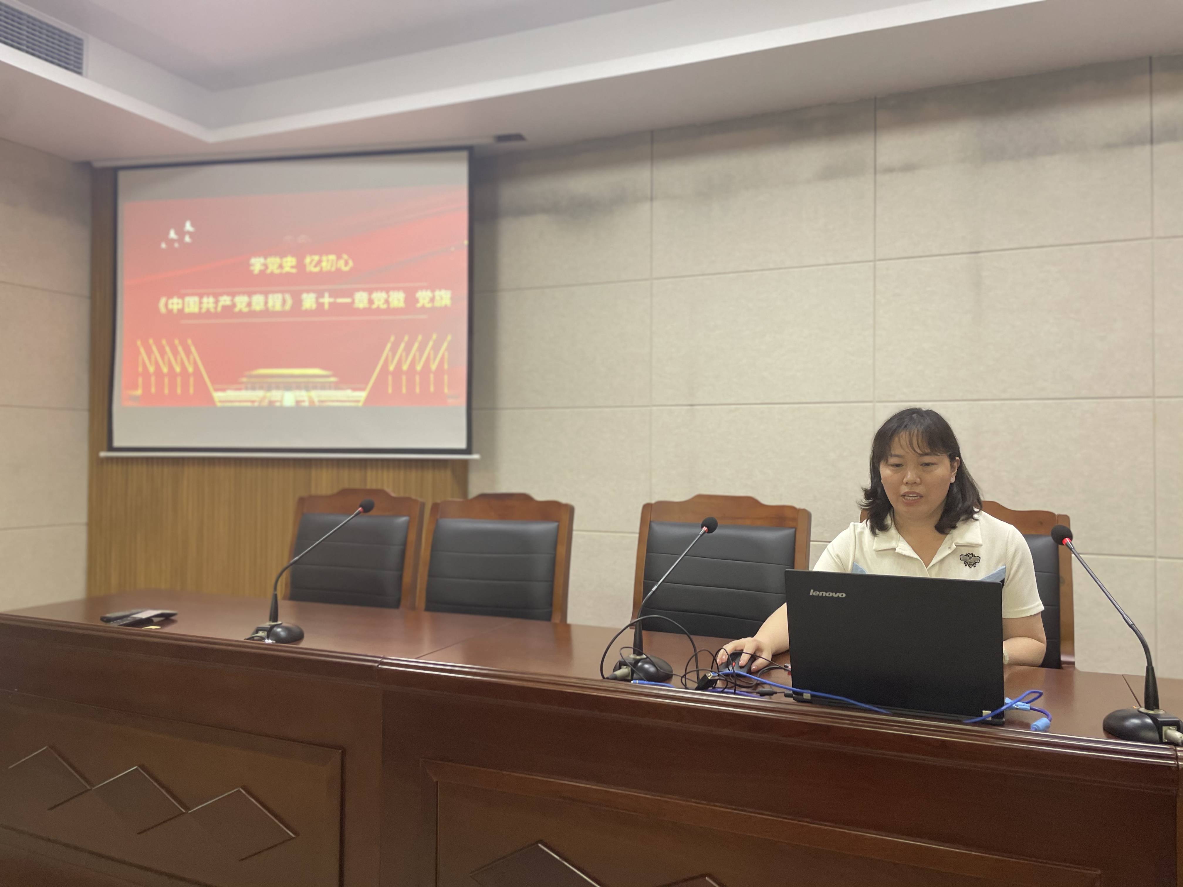支部宣传委员徐延芬副校长带领大家学习《中国共产党章程》,重点解读了党徽、党旗的由来与象征。党章指出:“中国共产党的党徽党旗是中国共产党的象征和标志。党的各级组织和每一个党员都要维护党徽党旗的尊严。”随着解读的深入,各位党员深刻认识到了自己身上肩负的使命和责任。
