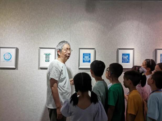 王老师为小记者们介绍了藏书票的产生和发展历史,制作的工艺,知名人士的藏书票作品及其寓意,同时也强调了一枚精巧别致的藏书票不仅展现了人们对艺术的追求,也传达了他们对书籍的热爱。活动当天同时也是“习近平新时代中国特色社会主义思想主题教育藏书票展”,王老师带领小记者们欣赏了爱国教育主题作品。