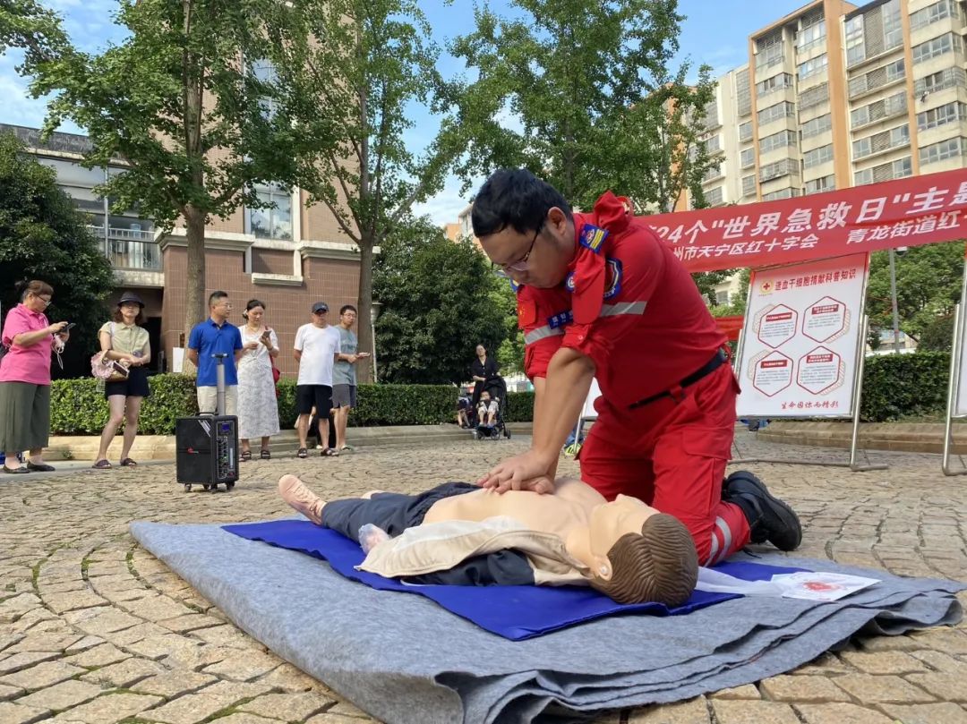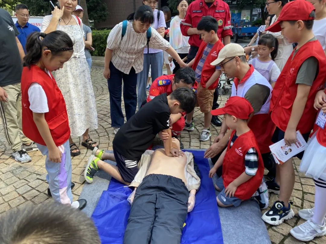 在专业老师的讲解下,小记者们对急救方法的使用有了一定的了解,随后小记者上前进行体验,老师在一旁耐心指导,小记者们认真学习。