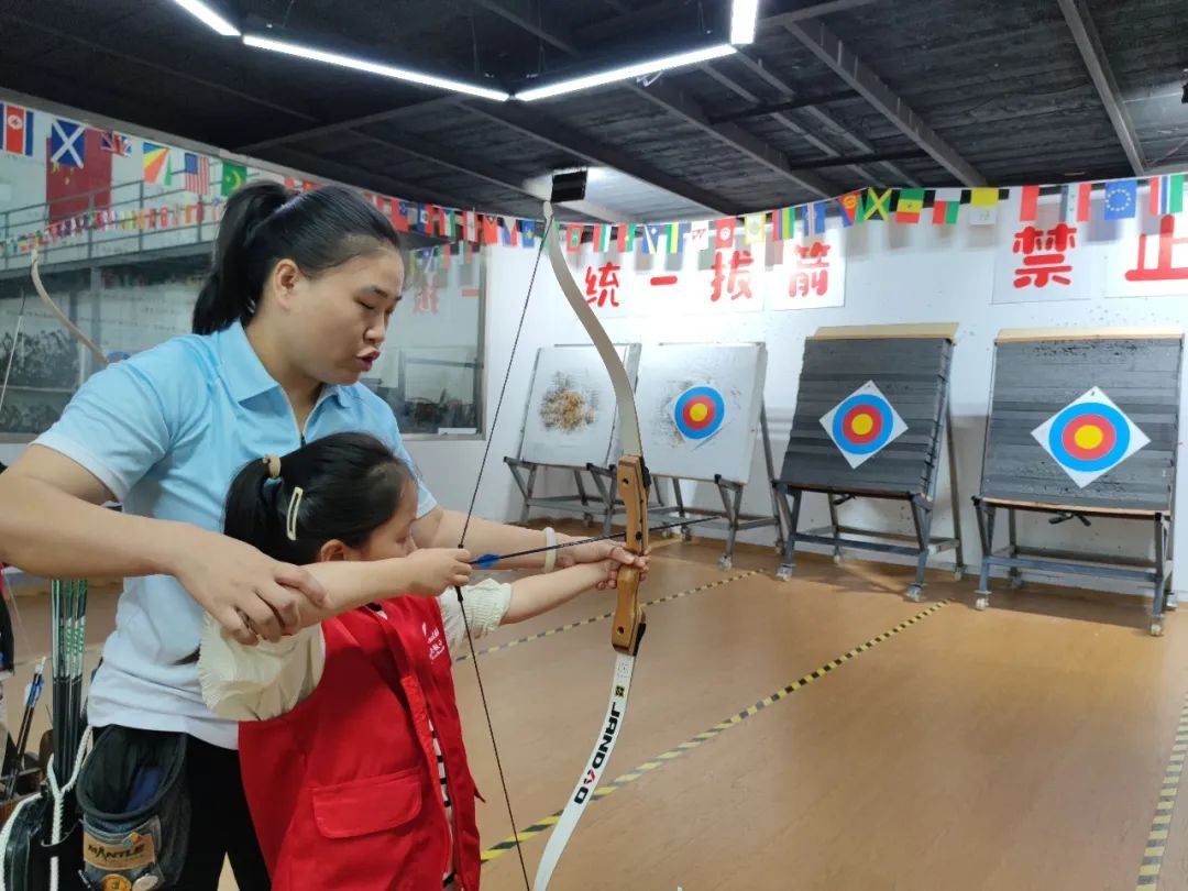 教练们耐心细致地讲解,小记者们则听得全神贯注,纷纷跃跃欲试。随着教练的一声令下,小记者们依次走到靶位前,拉满长弓,瞄准靶心,然后果断放箭。一时间,箭矢破空的声音此起彼伏,小记者们沉浸在射箭带来的乐趣与成就感中。