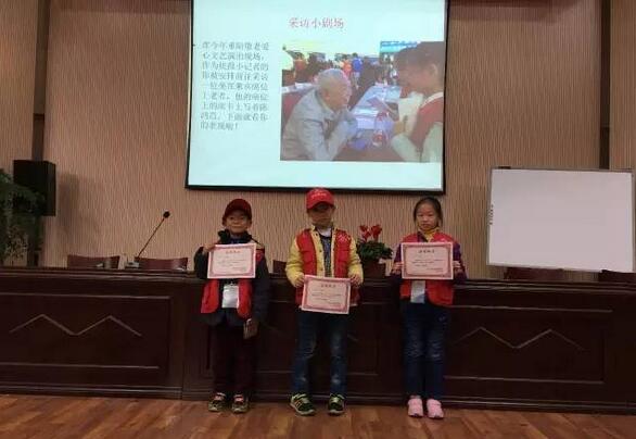 12月10日,虽然是星期六,新桥实验小学的快报小记者们并没有在家休息。下午2点,他们早早来到了学校的阶梯教室等候,原来今天《现代快报·小记者》栏目编辑王卫宇给各位到场的小记者带来了一场有趣的培训活动,他以一个个快报小记者活动作为例子,为大家讲解了什么是小记者,参加快报小记者能得到怎样的锻炼与收获,应该如何参加活动并遵守哪些规则。此外,王老师还和大家聊了聊作为在校学生身边都有哪些新闻可以采写和投稿,喜欢摄影的小记者应该注意哪些摄影小技巧。接着王老师与小记者们展开现场互动,小记者们积极参与,表现优秀的还得到了一些小礼品。活动最后,在《现代快报·小记者》栏目刊登过文章的小记者还被颁发了荣誉证书。短短1小时的培训活动,让现场的小记者们认识到——小记者,大学问!