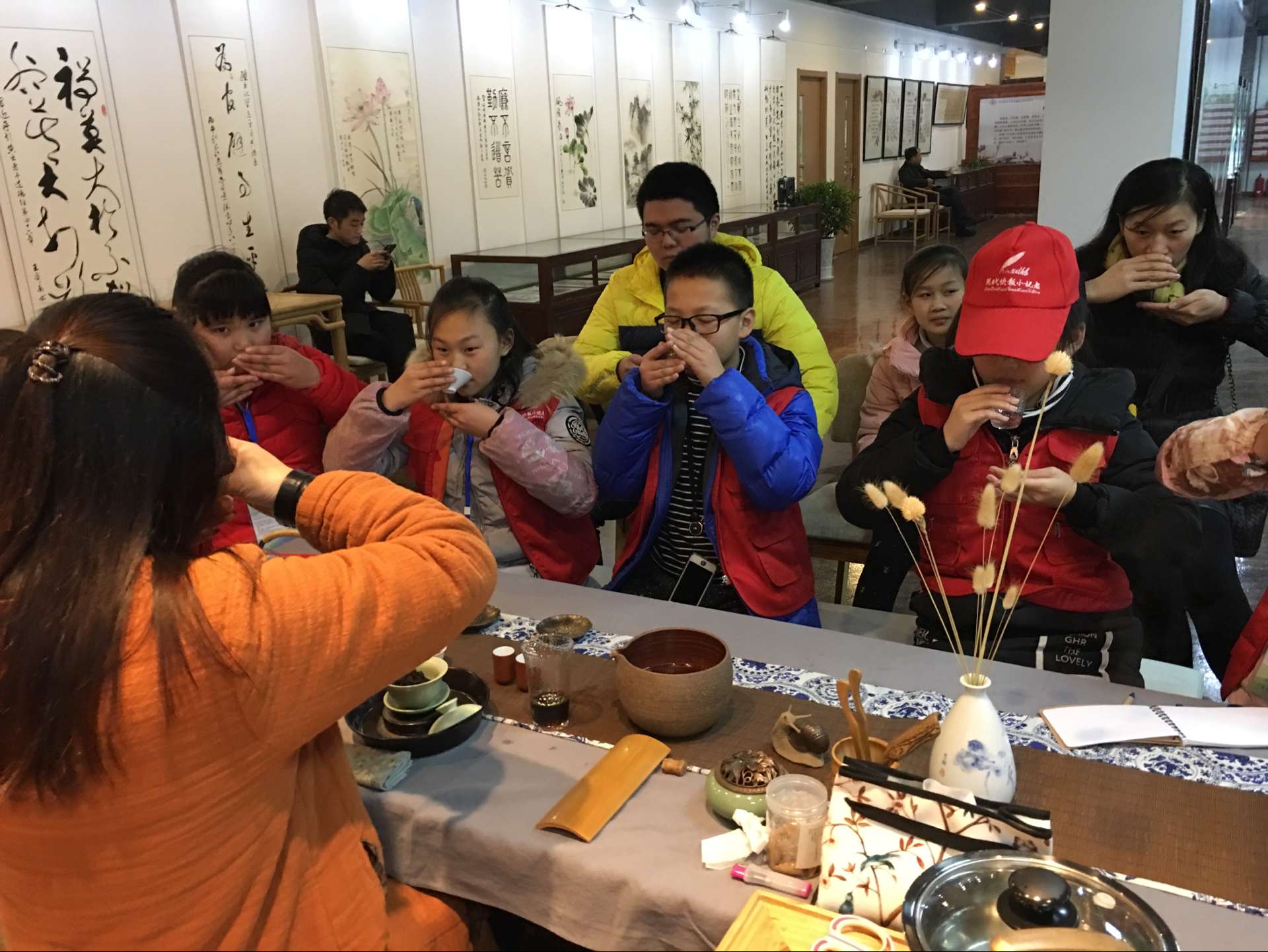 1月17日下午,刚放寒假的泰山小学和博爱教育集团40多名快报小记者来到天宁区红梅街道廉政文化示范基地雪浪轩,参加迎新春传统文化体验活动。快报小记者们分别开展了国画、书法、陶艺、茶艺、围棋的活动体验,并参观了红梅街道廉政文化示范基地。活动中,小记者们自己动手学写了福字和对联,了解高雅的茶道技艺,用自己的行动去迎接春节的到来。