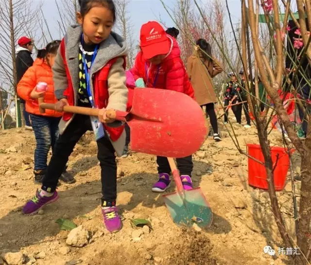 来自苏州的一对双胞胎当天也赶到现场参加活动,呼吁大家关爱环境,植树造福
