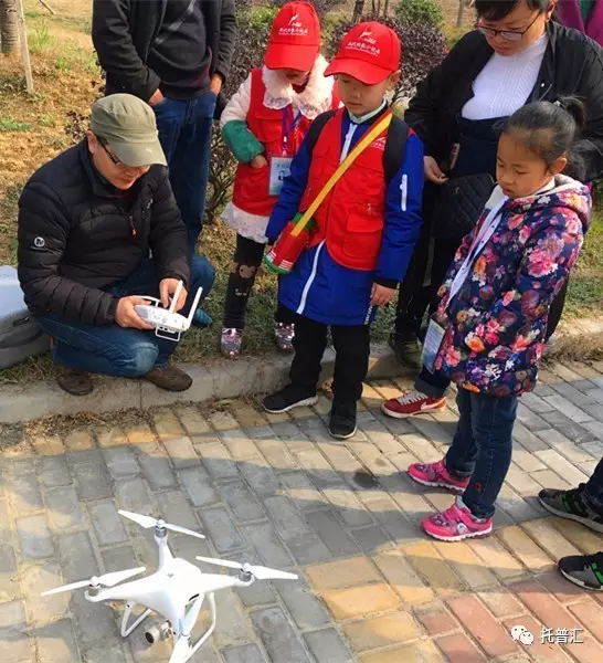 发现现场航拍的无人机,机会难得,现场采访驾驶员