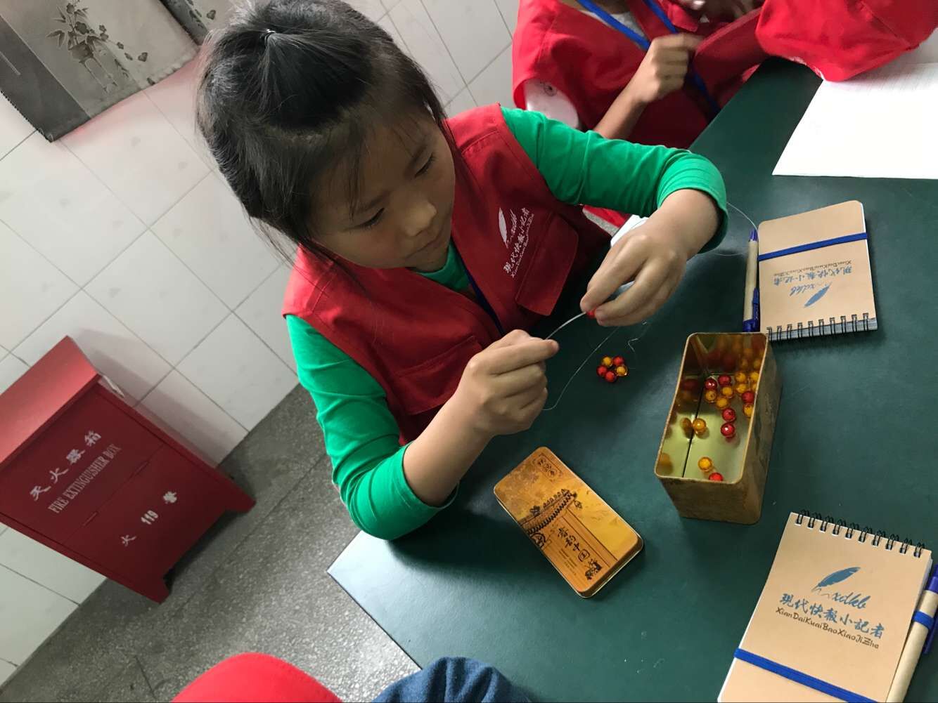 4月26号下午,由共青团常州市委、常州公益助学联合会举办的“快乐大篷车”公益活动,在现代快报(常州)小记者工作室的组织安排下,走进魏村中心小学。来自一加爱心社的魏老师给魏村小学的快报小记者带来了一堂极其考验小记者们团队协作能力的手工珠串体验课。活动中,每位小记者都认真聆听老师的讲解,并亲自动手制作了属于自己的作品。短短一个多小时的时间,小记者们都大呼过瘾,不仅培养了小记者的动手实践能力,更是对中国传统艺术的传承和发扬。