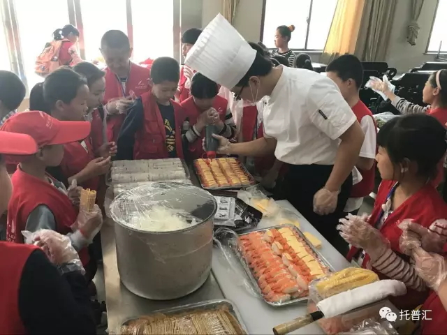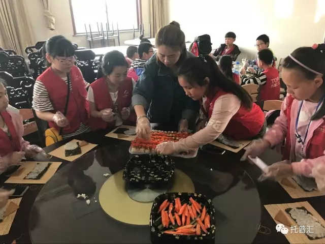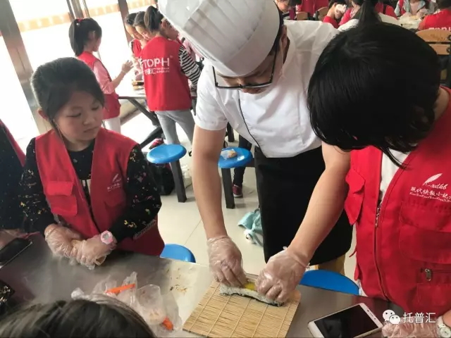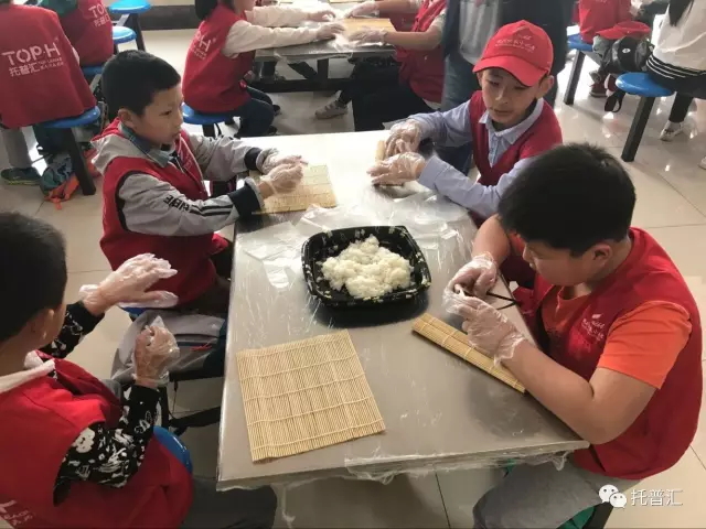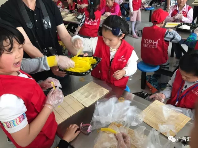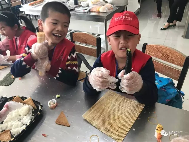 午饭时间,小记者们除了享用自己亲手制作的寿司,老师们还发了不同品种的寿司给大家品尝