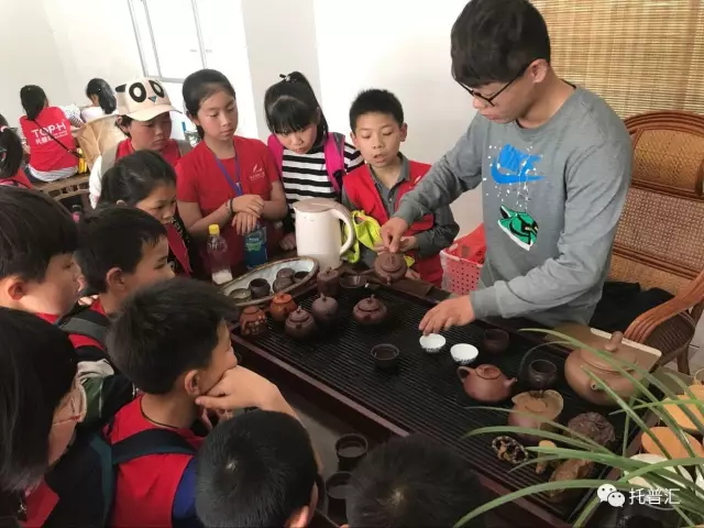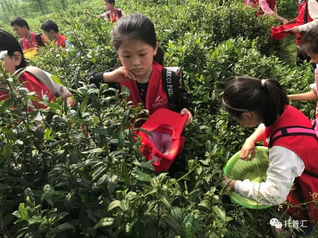 陶泥制作完毕后,小记者们化身茶农,徜徉在一片欢乐的茶海中,投入到采茶的劳作中