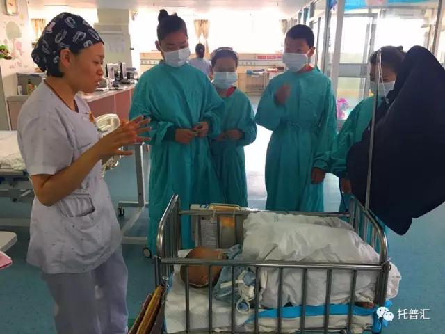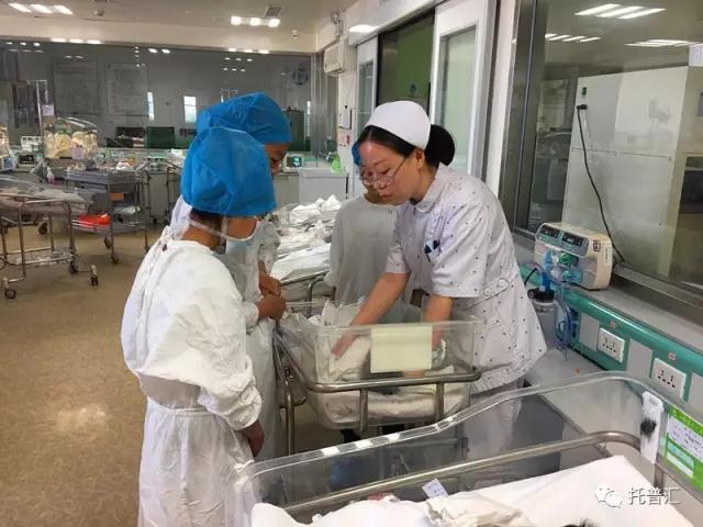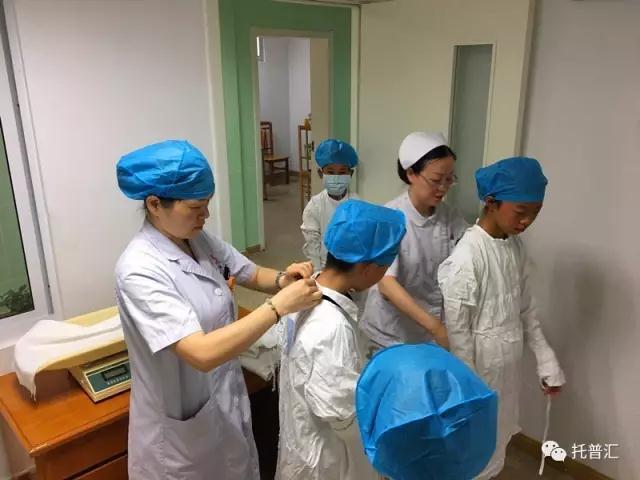 前往新生儿病房,要穿戴好隔离服与帽子
