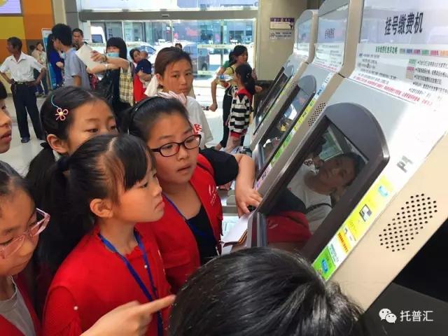 还有的小记者学习如何使用挂号缴费机,这样挂号更方便了