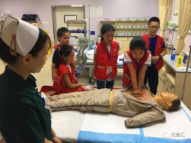 来到急诊室的小记者们学习如何正确进行心肺复苏