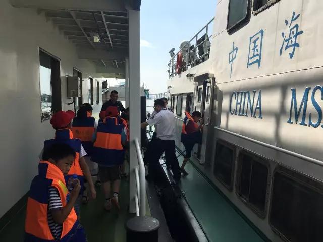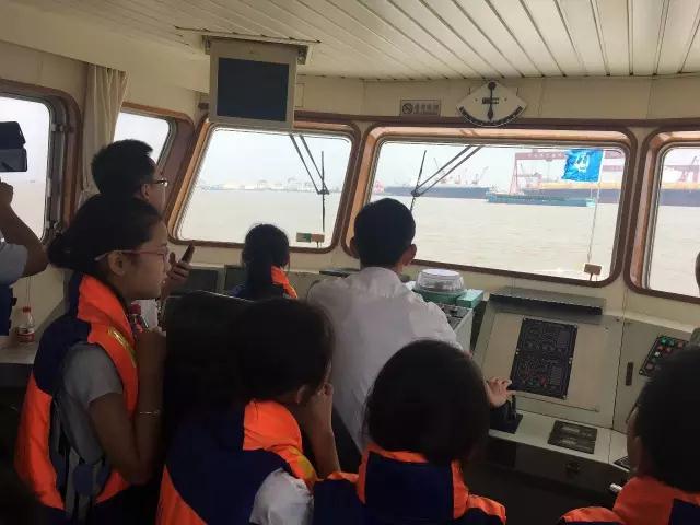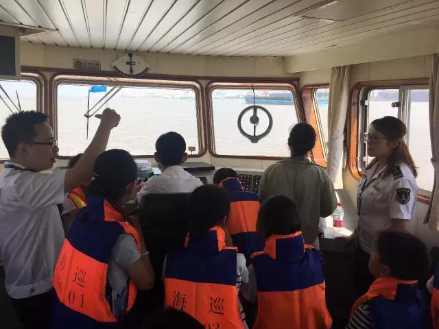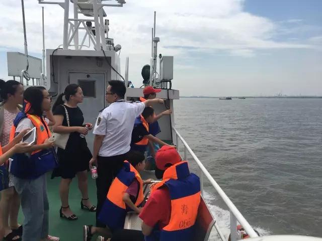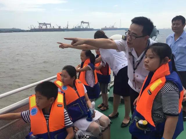 走出船舱,我们对江上的一切都感到好奇,陪同我们的海事局叔叔阿姨不厌其烦地为我们讲解