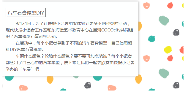 经过了一下午的时间,小记者都拥有了属于自己的汽车石膏模型,把它带回家,这是属于你的纪念哦~
