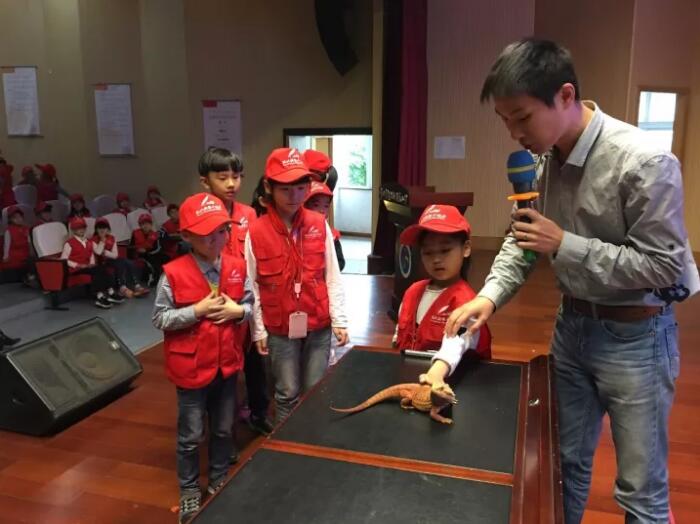 小记者们纷纷走向台前,近距离观察触摸。相信通过本次讲座,小记者们对于爬行动物有了更多的了解,留下了难忘的经历。