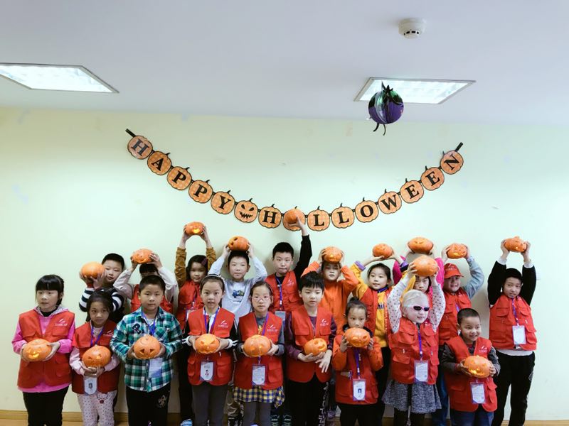 小记者们每个人都完成了南瓜灯的制作,让我们一起将作品展示给大家看看吧,小记者们在这里体验了一次非同寻常的万圣节